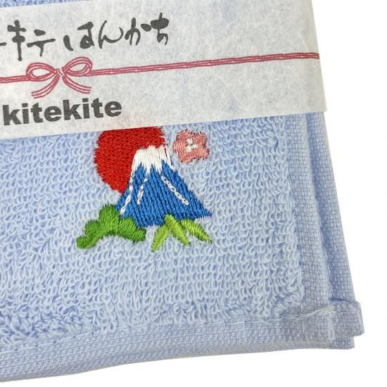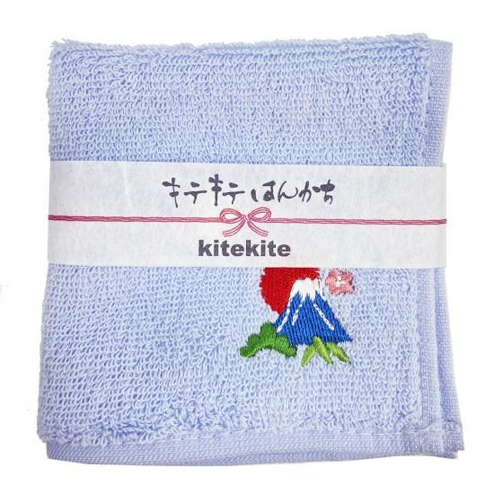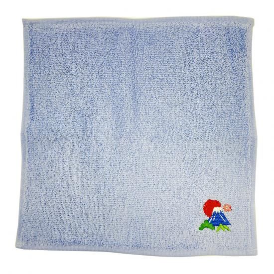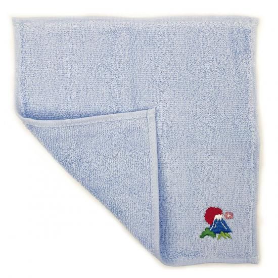 パイルハンカチ/スクエア/四角/ふじさん刺繍/みずいろ